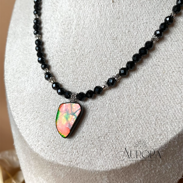 Sehr elegantes Edelsteincollier mit tollem Farbkontrast von schwarzem Spinell und buntem Ammolith!