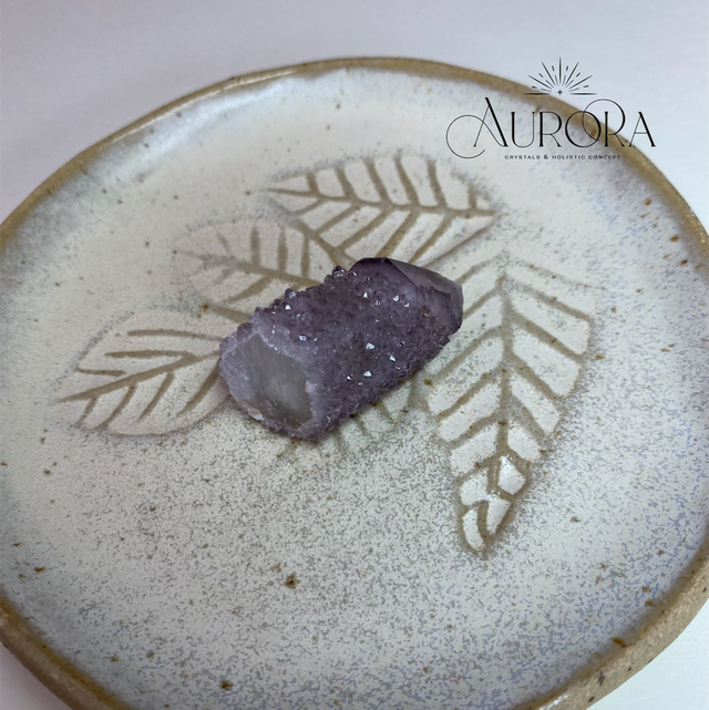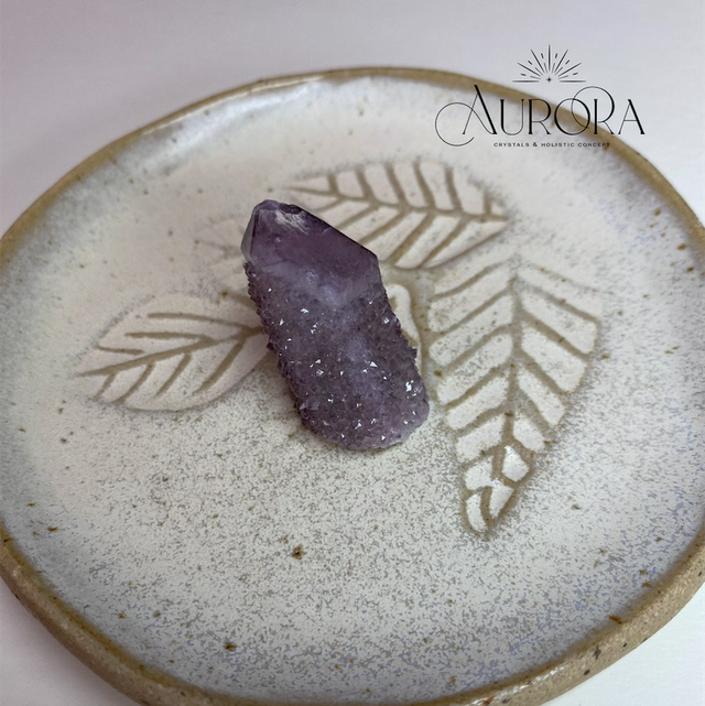 Aus der Wüste Südafrikas stammt der stachelte Kaktus-Quarz, der aufgrund seiner besonderen energetischen Eigenschaften auch Spirit Quarz genannt wird. Typisch sind die zarten Lavendelfarben und die vielen kleinen Amethyst-Kristalle, die als "zweite Generation" auf einem oder mehreren größeren Kristall gewachsen sind.